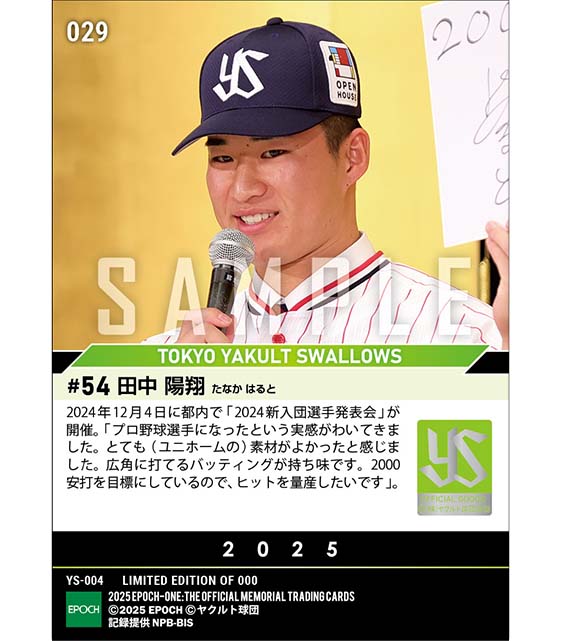 公式RC【田中陽翔】新入団選手発表(ドラフト4巡目)「2000安打を目標にしている」(24.12.4) のカードを買うならエポックワン!税込・送料無料!