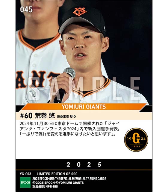 公式RC【荒巻 悠】新入団選手発表(ドラフト3巡目)「一振りで流れを変える選手に」(24.11.30) のカードを買うならエポックワン!税込・送料無料!