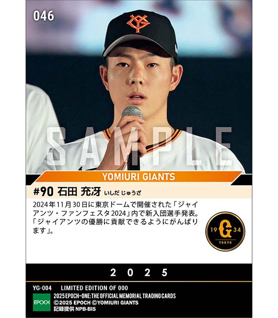 公式RC【石田充冴】新入団選手発表(ドラフト4巡目)「ジャイアンツの優勝に貢献できるように」(24.11.30) のカードを買うならエポックワン!税込・送料無料!