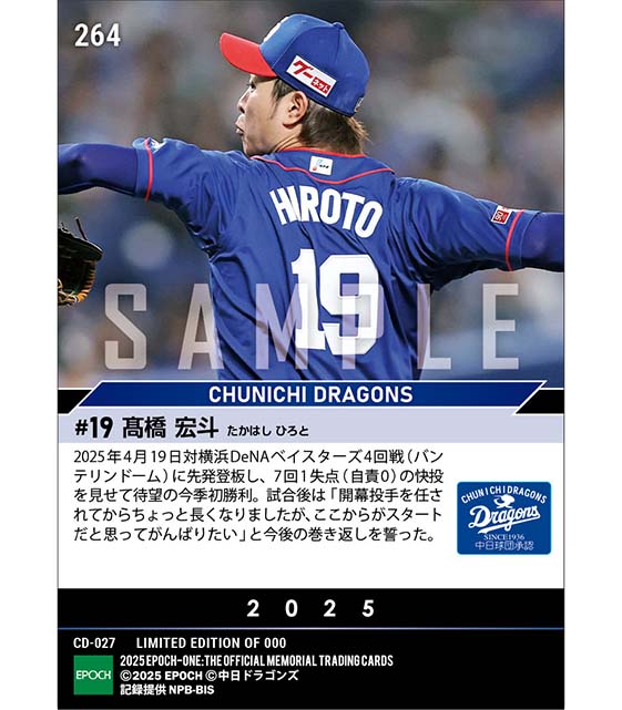 公式【髙橋宏斗】待望の今季初勝利(25.4.19) のカードを買うならエポックワン!税込・送料無料!