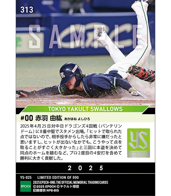公式【赤羽由紘】ホームスチール&自身2度目の4安打(25.4.25) のカードを買うならエポックワン!税込・送料無料!