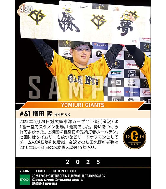 公式【増田 陸】プロ初先頭打者弾(25.5.28) のカードを買うならエポックワン!税込・送料無料!