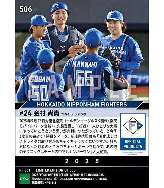 公式【金村尚真】今季3度目の完封勝利(25.5.23) のカードを買うならエポックワン!税込・送料無料!