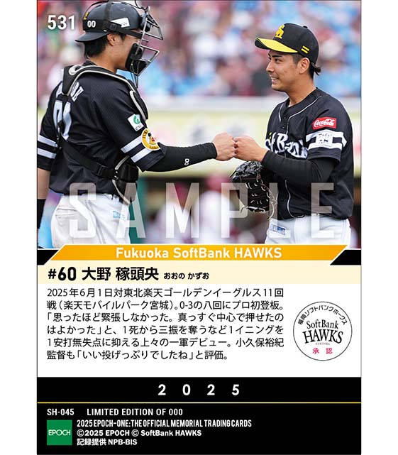 公式【大野稼頭央】プロ初登板で1回零封(25.6.1) のカードを買うならエポックワン!税込・送料無料!