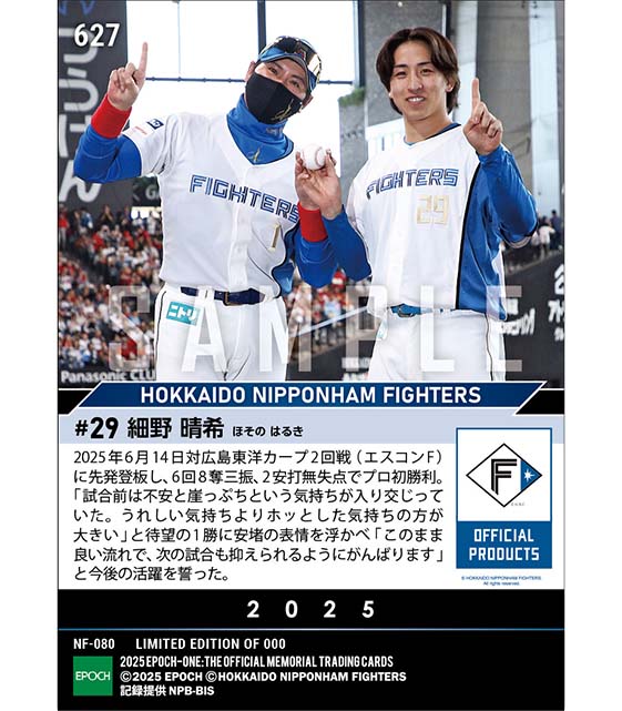 公式【細野晴希】待望のプロ初勝利(25.6.14) のカードを買うならエポックワン!税込・送料無料!