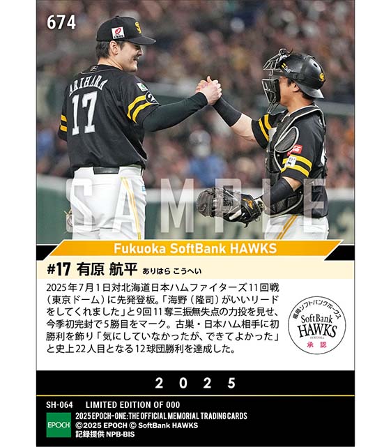 公式【有原航平】今季初完封で史上22人目の12球団勝利達成(25.7.1) のカードを買うならエポックワン!税込・送料無料!