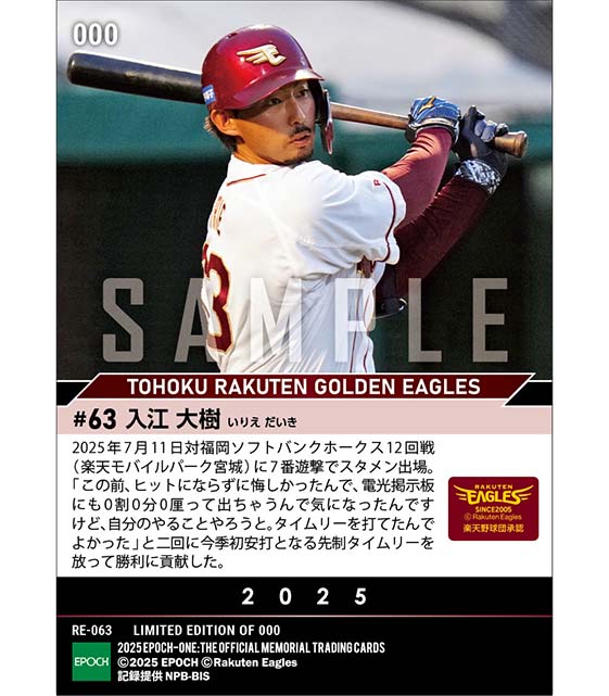 公式【入江大樹】今季初安打となる先制タイムリー(25.7.11) のカードを買うならエポックワン!税込・送料無料!