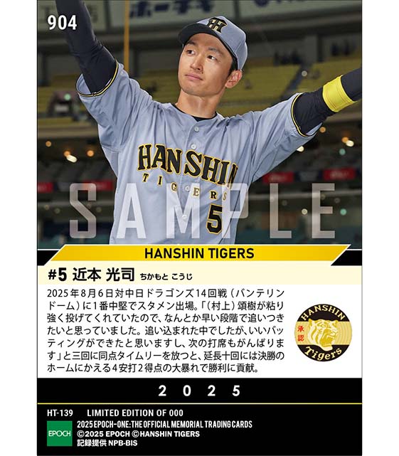公式【近本光司】4安打の大暴れで首位打者浮上(25.8.6) のカードを買うならエポックワン!税込・送料無料!
