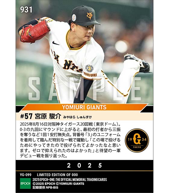公式RC【宮原駿介】プロ初登板「長嶋茂雄終身名誉監督追悼試合」(25.8.16) のカードを買うならエポックワン!税込・送料無料!