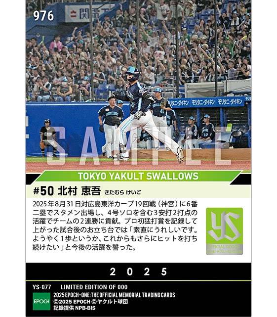 公式【北村恵吾】4号ソロ含むプロ初猛打賞(25.8.31) のカードを買うならエポックワン!税込・送料無料!