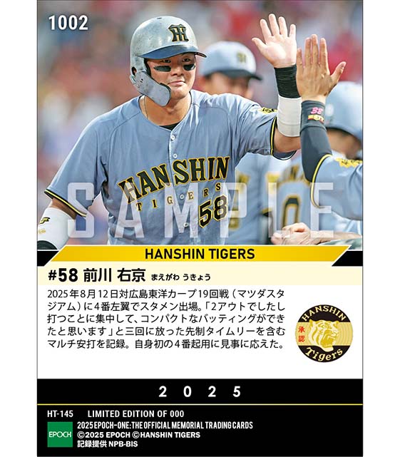 公式【前川右京】プロ初4番でマルチ安打(25.8.12) のカードを買うならエポックワン!税込・送料無料!