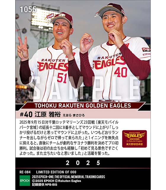 公式RC【江原雅裕】プロ初勝利(25.9.15) のカードを買うならエポックワン!税込・送料無料!