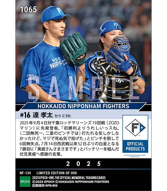 公式【達 孝太】52日ぶりの白星となる今季7勝目(25.9.4) のカードを買うならエポックワン!税込・送料無料!