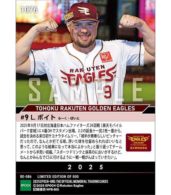 公式【ボイト】延長十一回来日初サヨナラ打(25.9.17) のカードを買うならエポックワン!税込・送料無料!