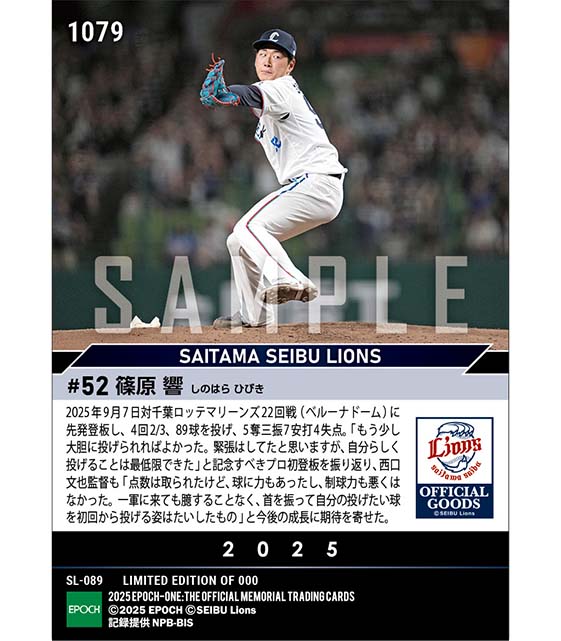 公式RC【篠原 響】高卒ルーキーがプロ初登板初先発(25.9.7) のカードを買うならエポックワン!税込・送料無料!
