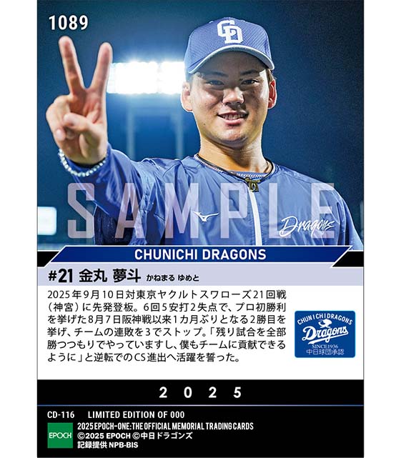 公式RC【金丸夢斗】チームの連敗を止めるプロ2勝目(25.9.10) のカードを買うならエポックワン!税込・送料無料!