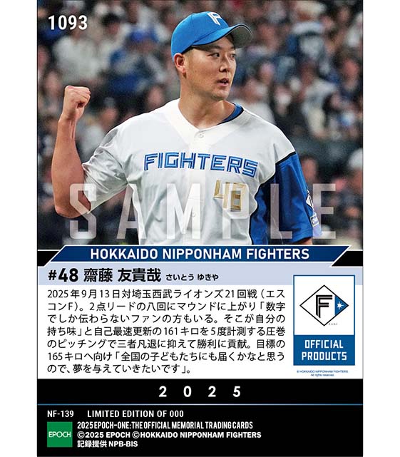 公式【齋藤友貴哉】自己最速を更新する161キロ(25.9.13) のカードを買うならエポックワン!税込・送料無料!