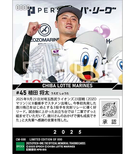 公式【植田将太】今季初スタメンマスクで好リード(25.9.23) のカードを買うならエポックワン!税込・送料無料!