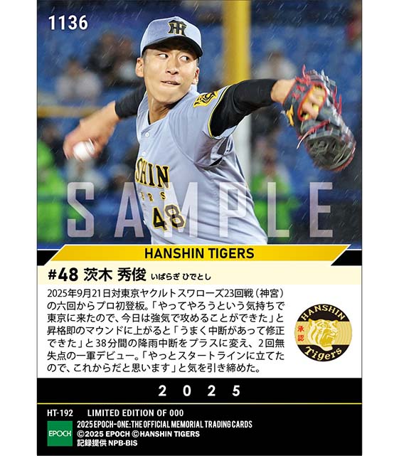 公式【茨木秀俊】プロ初登板で降雨中断またぎの零封デビュー(25.9.21) のカードを買うならエポックワン!税込・送料無料!