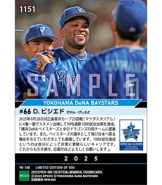 公式【ビシエド】NPB通算1000試合出場(25.9.28) のカードを買うならエポックワン!税込・送料無料!