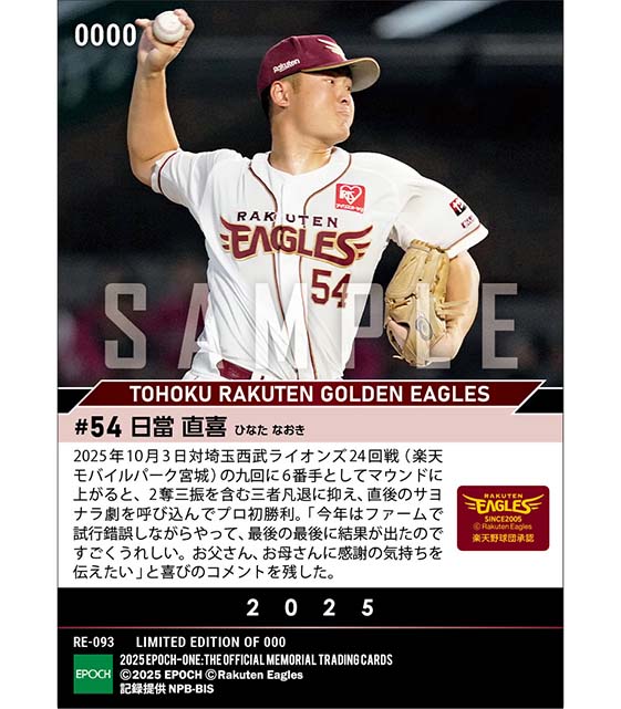 公式【日當直喜】プロ初勝利(25.10.3) のカードを買うならエポックワン!税込・送料無料!