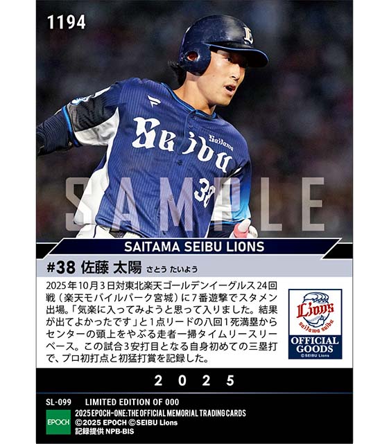 公式RC【佐藤太陽】プロ初打点&初三塁打&初猛打賞(25.10.3) のカードを買うならエポックワン!税込・送料無料!