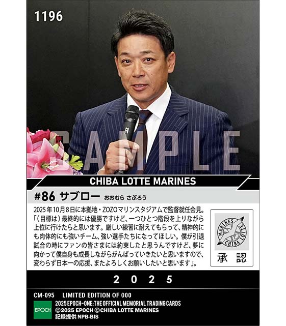 公式【サブロー】監督就任会見「僕自身も成長しながらがんばっていきたい」(25.10.8) のカードを買うならエポックワン!税込・送料無料!