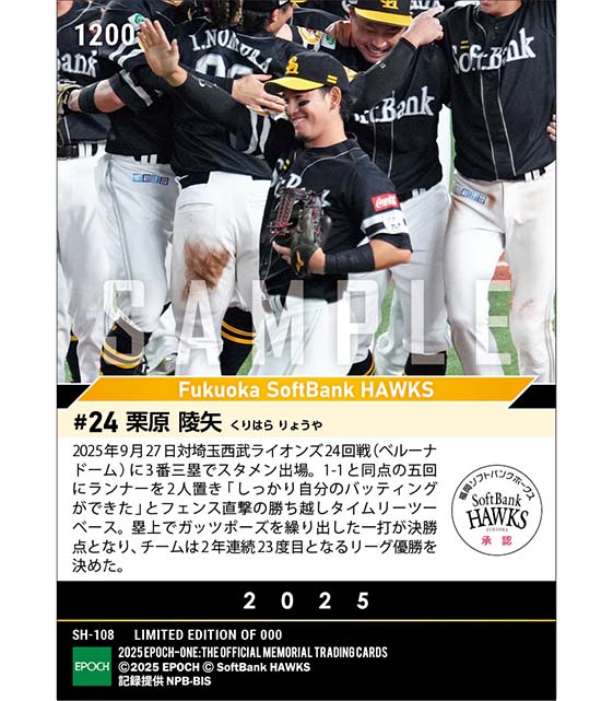 公式【栗原陵矢】リーグ優勝を決める決勝タイムリー(2025シーズンリーグ優勝決定試合)(25.9.27) のカードを買うならエポックワン!税込・送料無料!
