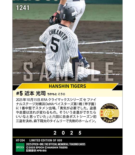 公式【近本光司】意表を突く三盗成功からの決勝生還「2025 JERA クライマックスシリーズ セ」(25.10.15) のカードを買うならエポックワン!税込・送料無料!