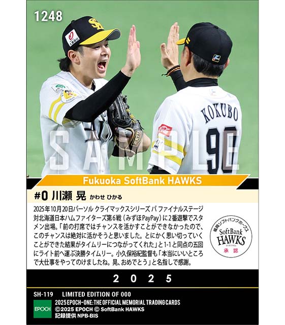 公式【川瀬 晃】日本シリーズ進出をつかむ決勝タイムリー「2025 パーソル クライマックスシリーズ パ」(25.10.20) のカードを買うならエポックワン!税込・送料無料!