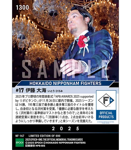 公式【伊藤大海】最多勝利投手賞、最多三振奪取投手賞、沢村栄治賞「NPB AWARDS 2025 supported by リポビタンD」(25.11.26) のカードを買うならエポックワン!税込・送料無料!