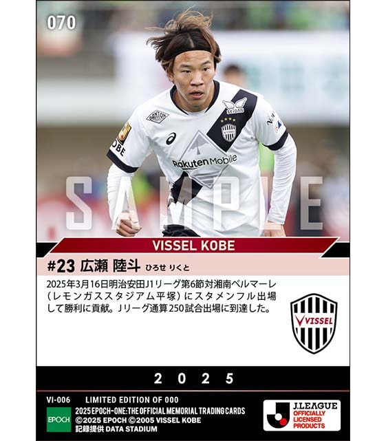公式【広瀬陸斗】Jリーグ通算250試合出場(25.3.16) のカードを買うならエポックワン!税込・送料無料!