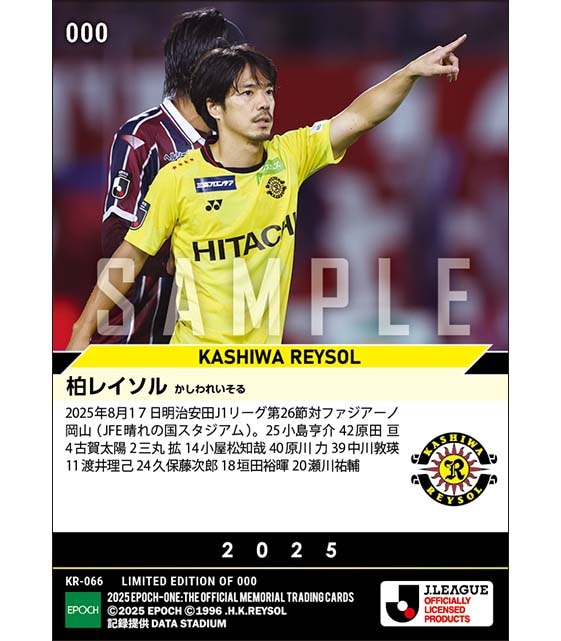 公式【柏レイソル】2025シーズン第26節スタメン(25.8.17) のカードを買うならエポックワン!税込・送料無料!