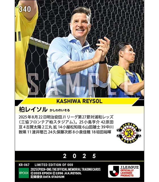 公式【柏レイソル】2025シーズン第27節スタメン(25.8.22) のカードを買うならエポックワン!税込・送料無料!