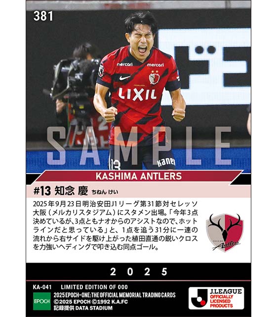 公式【知念 慶】先制を許した直後の同点ゴール(25.9.23) のカードを買うならエポックワン!税込・送料無料!