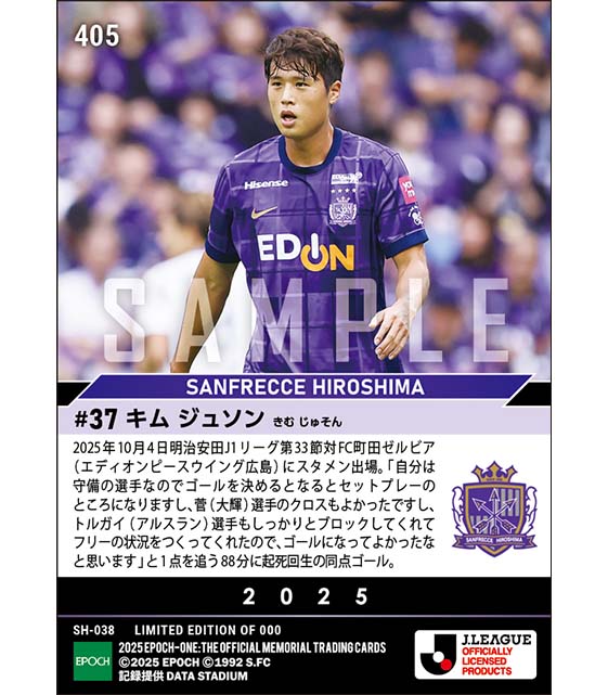 公式【キム ジュソン】サンフレッチェ加入後初ゴール(25.10.4) のカードを買うならエポックワン!税込・送料無料!