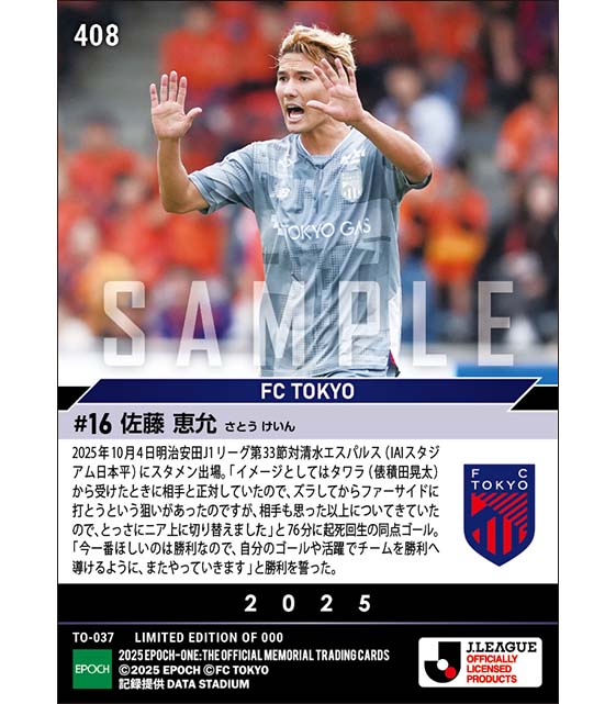 公式【佐藤恵允】起死回生の同点ゴール(25.10.4) のカードを買うならエポックワン!税込・送料無料!