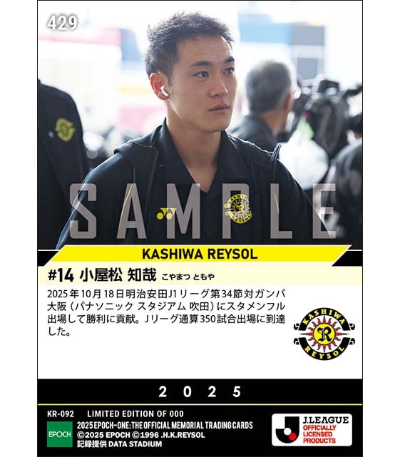 公式【小屋松知哉】Jリーグ通算350試合出場(25.10.18) のカードを買うならエポックワン!税込・送料無料!