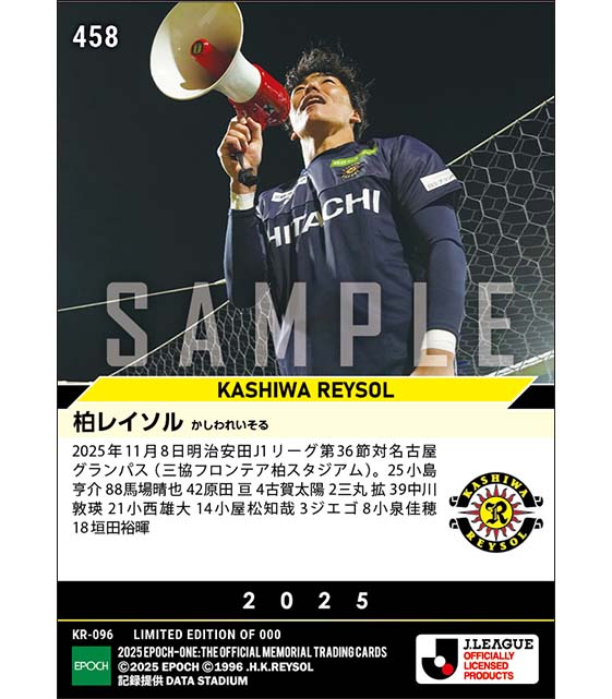 公式【柏レイソル】2025シーズン第36節スタメン(25.11.8) のカードを買うならエポックワン!税込・送料無料!