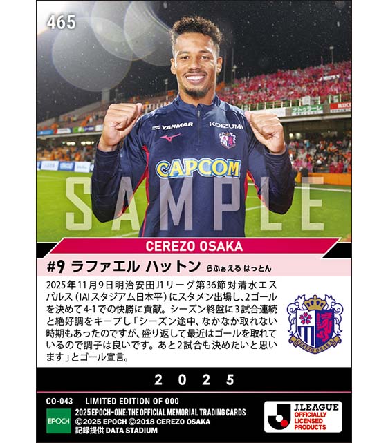 公式【ラファエル ハットン】得点ランクトップまで2差に迫る2ゴール(25.11.9) のカードを買うならエポックワン!税込・送料無料!