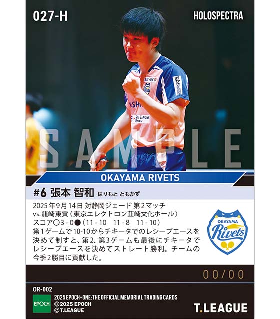 公式※ホロスペクトラ 【張本智和】3ゲーム連続レシーブエース勝利(25.9.14) のカードを買うならエポックワン!税込・送料無料!