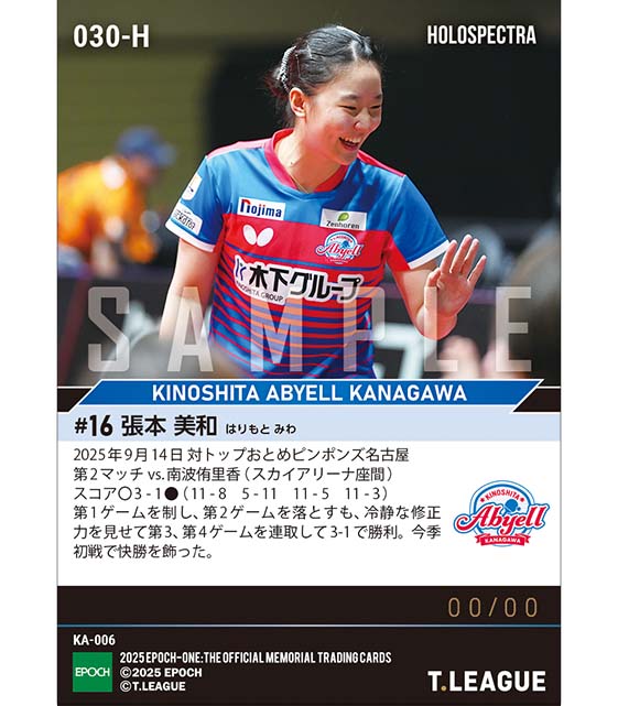 公式※ホロスペクトラ 【張本美和】今季初戦に快勝(25.9.14) のカードを買うならエポックワン!税込・送料無料!