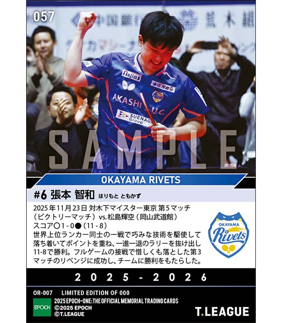 公式【張本智和】チームを勝利に導くリベンジに成功(25.11.23) のカードを買うならエポックワン!税込・送料無料!
