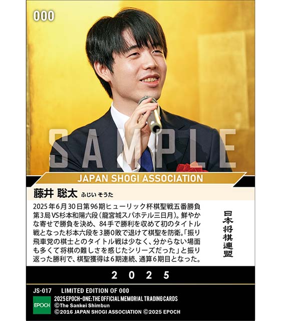 公式【藤井聡太】「棋聖」防衛に成功して6連覇達成(25.6.30)『E』 のカードを買うならエポックワン!税込・送料無料!