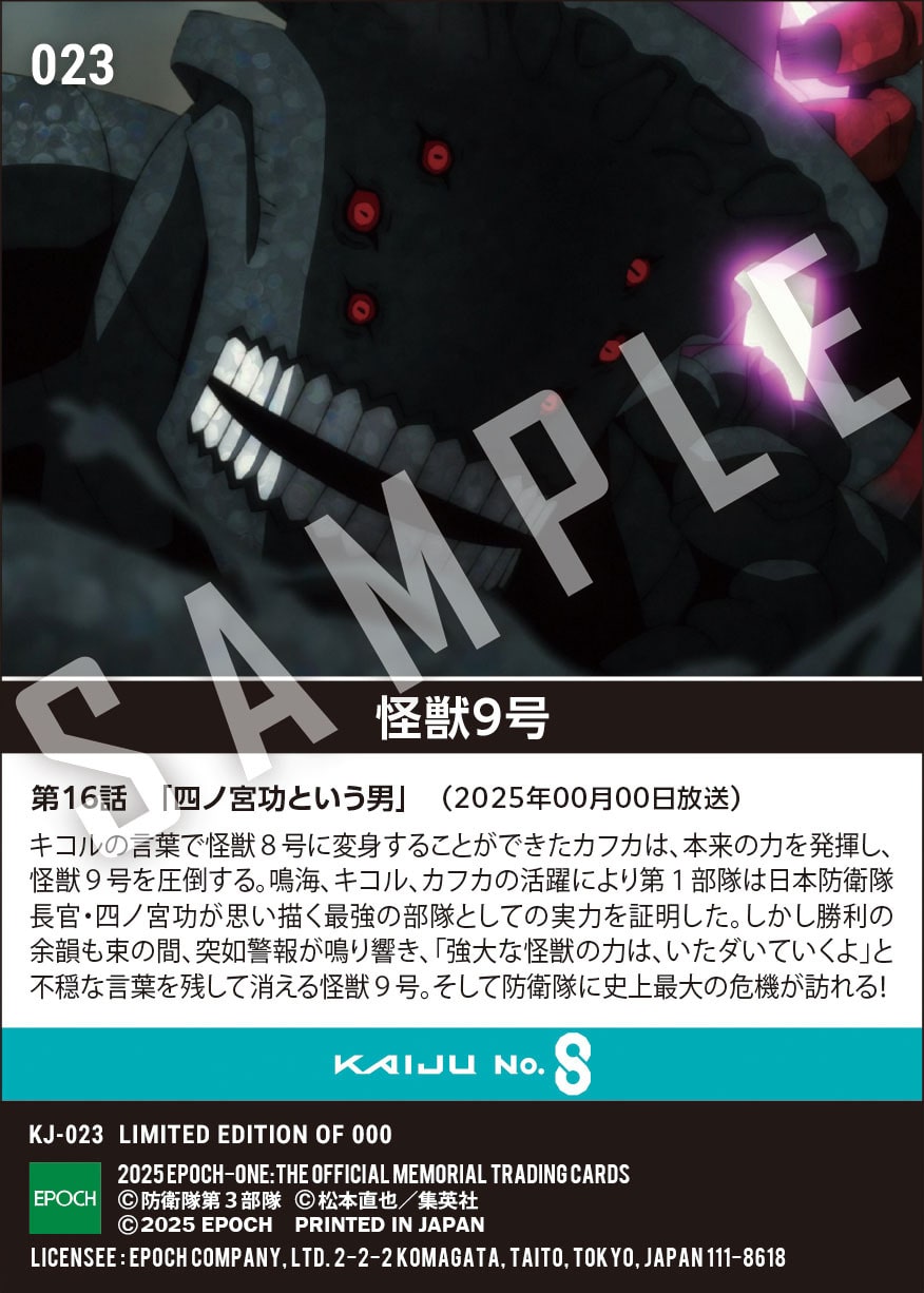 公式アニメ『怪獣8号』第2期コレクションカード「 怪獣9号」(第16話 「四ノ宮功という男」) のカードを買うならエポックワン!税込・送料無料!