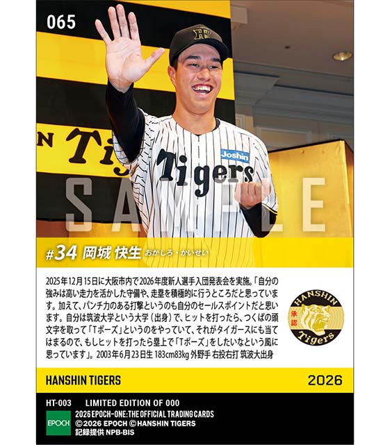 公式RC【岡城快生】新入団発表(ドラフト3巡目)「ヒットを打ったら塁上で「Tポーズ」をしたい」(25.12.15) のカードを買うならエポックワン!税込・送料無料!
