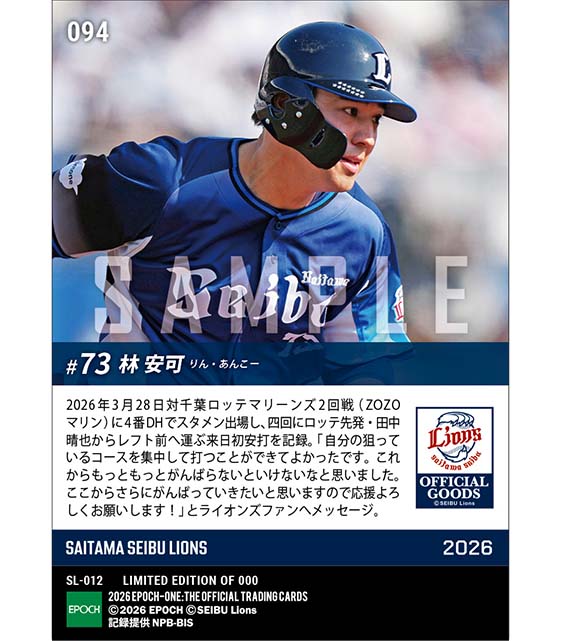 公式【林 安可】来日初出場初安打(26.3.28) のカードを買うならエポックワン!税込・送料無料!