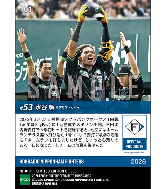 公式【水谷 瞬】初の開幕スタメンで今季初本塁打(26.3.27) のカードを買うならエポックワン!税込・送料無料!