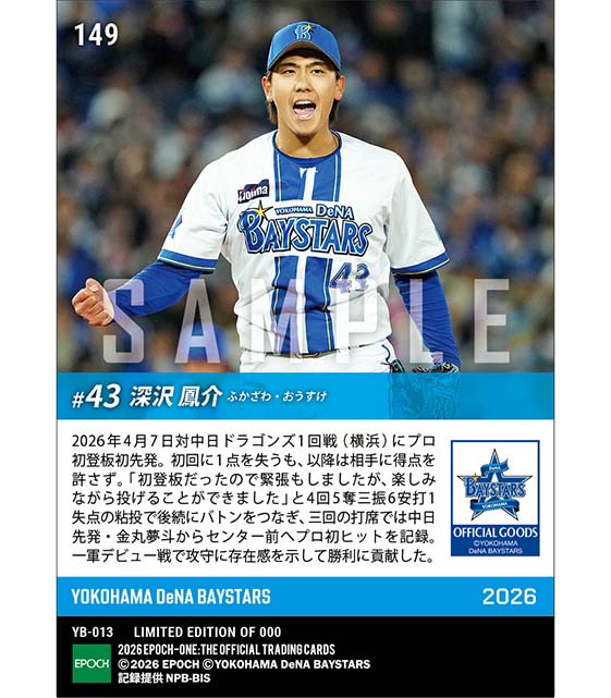 公式【深沢鳳介】プロ初登板初先発&プロ初打席初安打(26.4.7) のカードを買うならエポックワン!税込・送料無料!