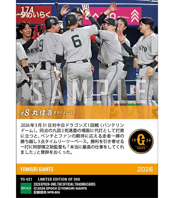 公式【丸 佳浩】今季初安打となる代打決勝タイムリー(26.3.31) のカードを買うならエポックワン!税込・送料無料!